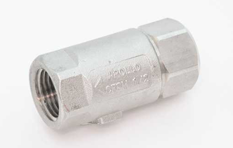 When quiet operation matters, the Apollo 62 delivers. This ball-cone silent check valve minimizes water hammer and noise, making it perfect for hospitals, hotels, and office buildings. Ultra-low 1/2 psi cracking pressure, 400 psig rating, stainless steel construction. Made in the USA, sizes 1/4" through 2".